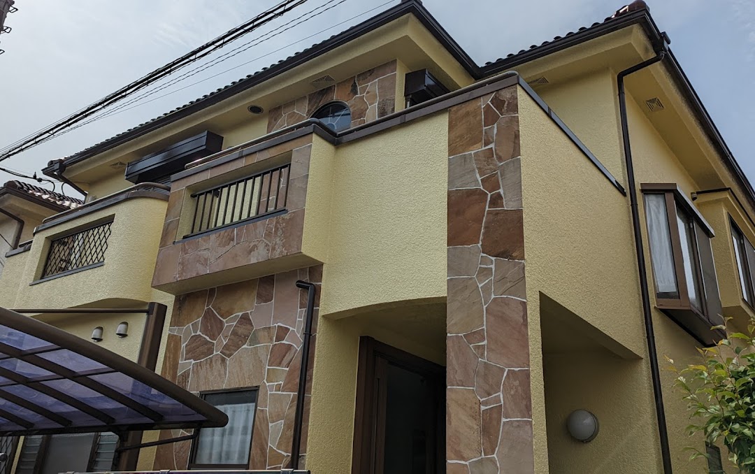 埼玉県川越市伊勢原町で外壁の塗り替えリフォームを行いました。 ■使用塗料 ・外壁 メーカー:アステックペイント 製品名:超低汚染リファイン1000MF-IR 色:9009レモン
