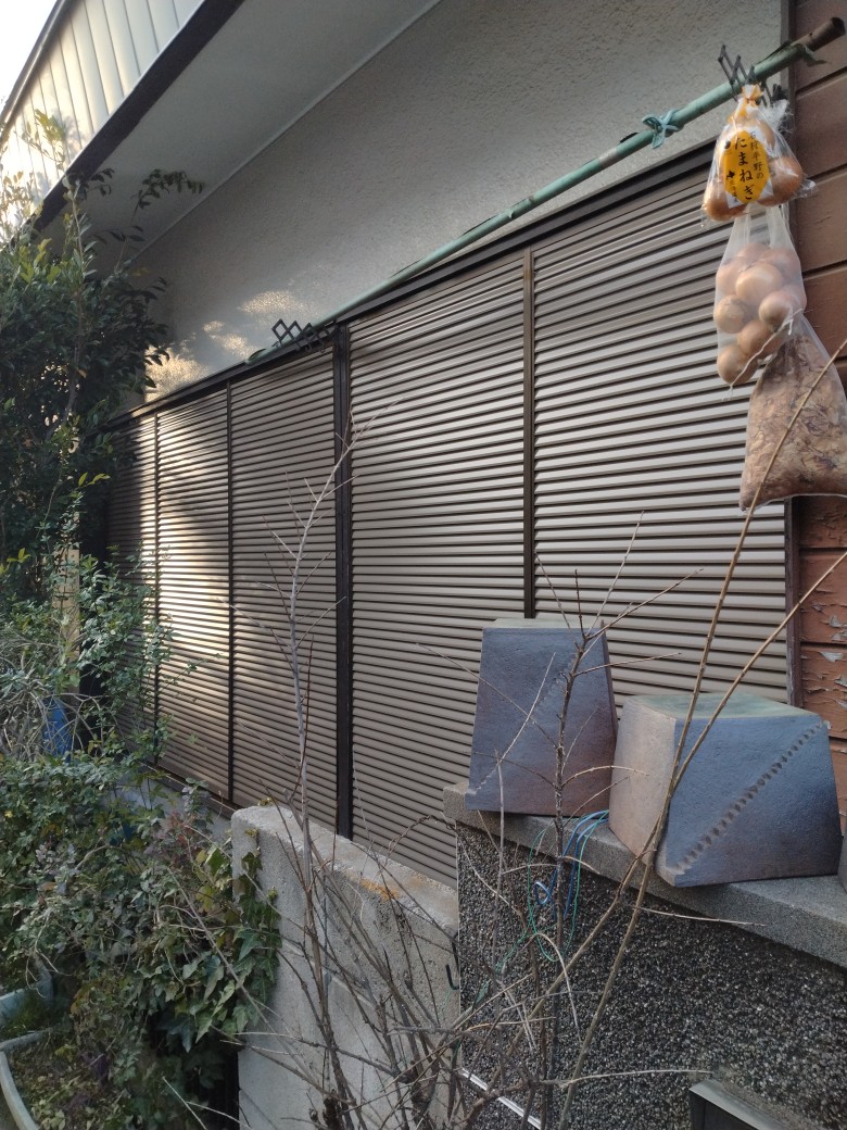 694 T様邸 雨戸交換工事 上原アルミ工業 敷居がすり減って動かなくなってしまった古いトタン雨戸の下枠にアルミレールをとりつけて新しい雨戸を入れ、スムーズに開閉できるようになりました。 新しい雨戸 リフォーム前の古くなった木枠の雨戸のレール 場所 富士見市 工事概要 雨戸交換工事